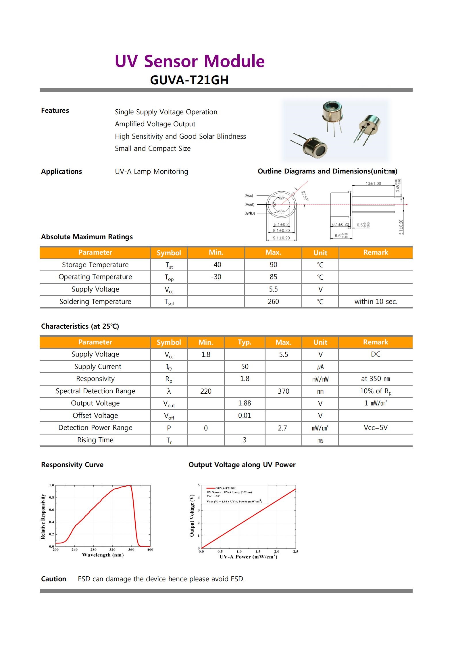 二、紫外線傳感器 - GUVA-T21GH特性: