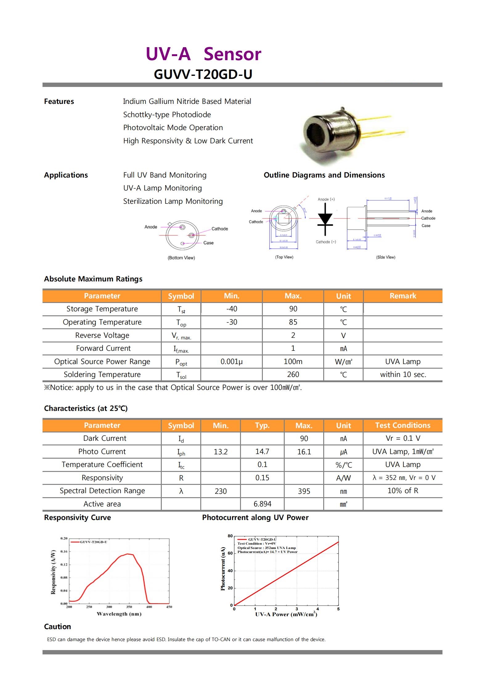 韓國Genicom紫外線傳感器GUVC-T21GH 2光電二極管原廠代理商