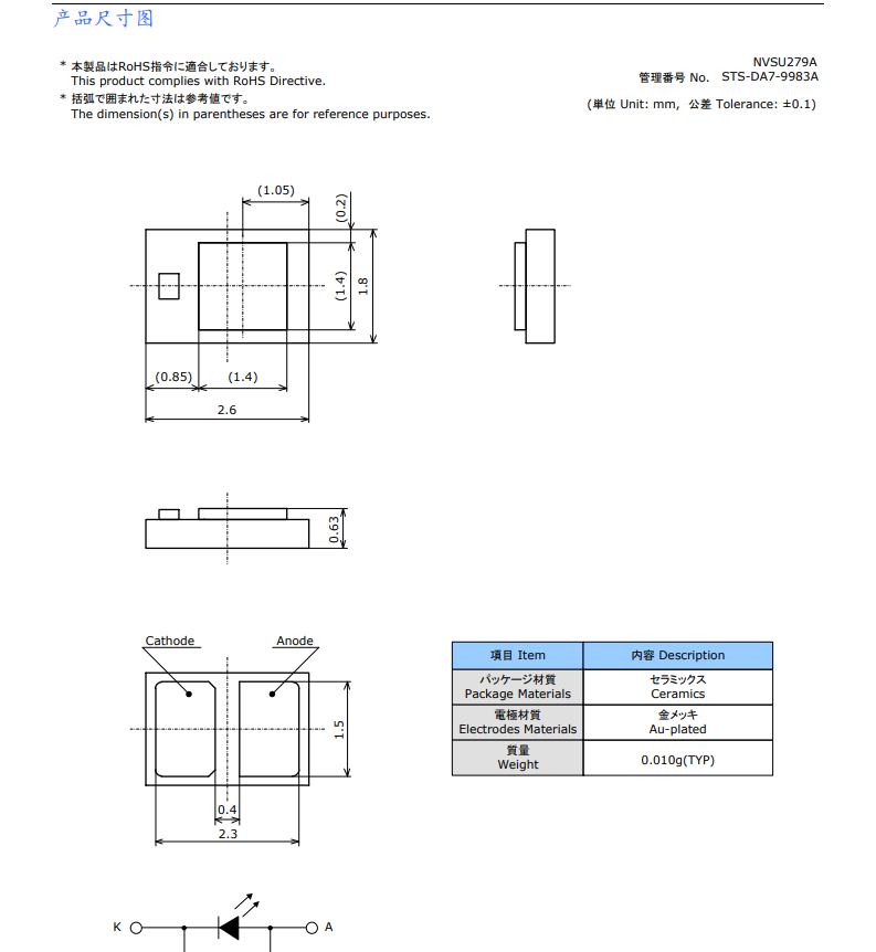 首頁(yè) / 產(chǎn)品中心 / NVSU279A (405nm)